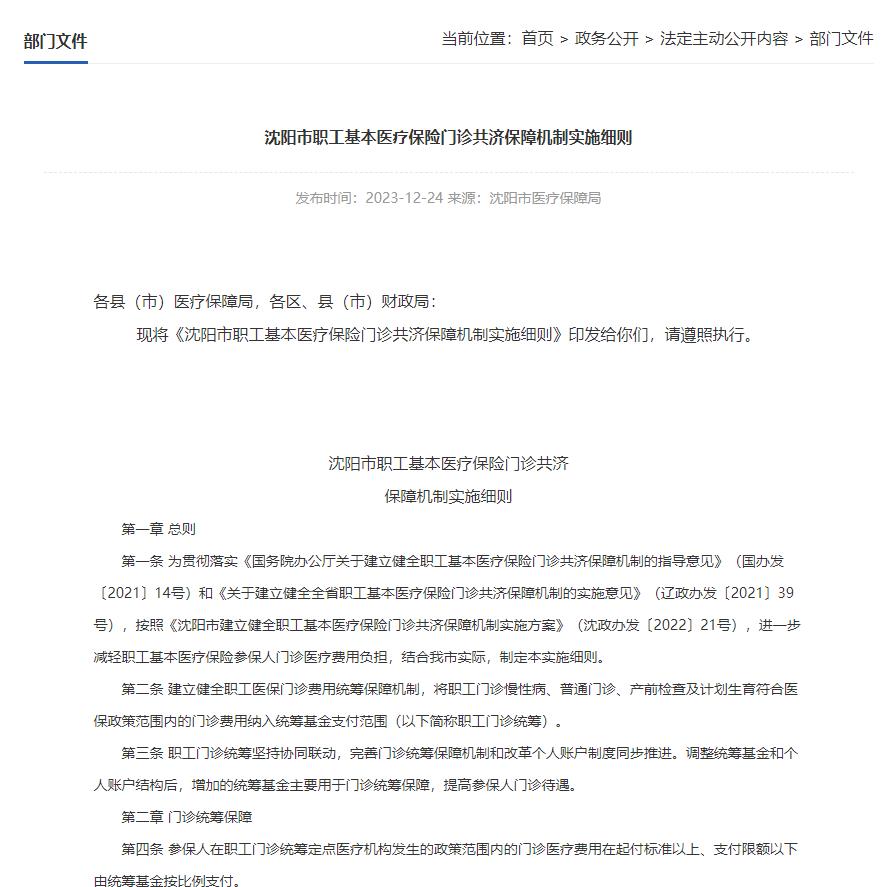 沈陽(yáng)市職工基本醫(yī)療保險(xiǎn)門診共濟(jì)保障機(jī)制實(shí)施細(xì)則